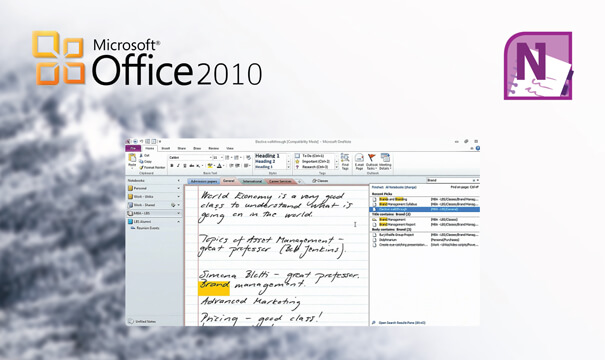O OneNote 2010 é uma parte integrante do Microsoft Office 2010, que facilita a coleta e a organização. encontrar e partilhar as suas notas e informações de forma mais eficiente e eficaz. Poderosos recursos de pesquisa podem ajudá-lo a encontrar informações textuais em uma imagem ou palavras faladas em gravações de áudio ou vídeo.