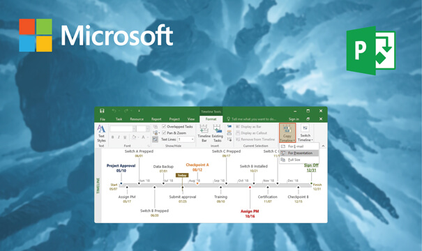 Recurso Linhas do tempo "Timelines" no Project Standard 2016